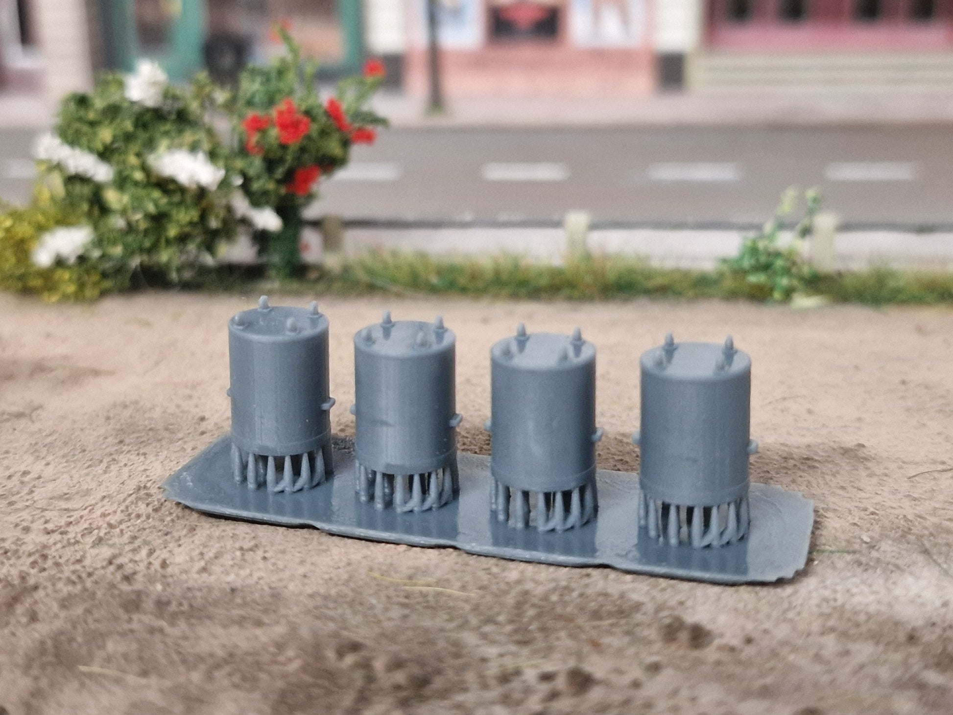 N Gauge Galvanised Industrial Round Bins X4 3d Printed