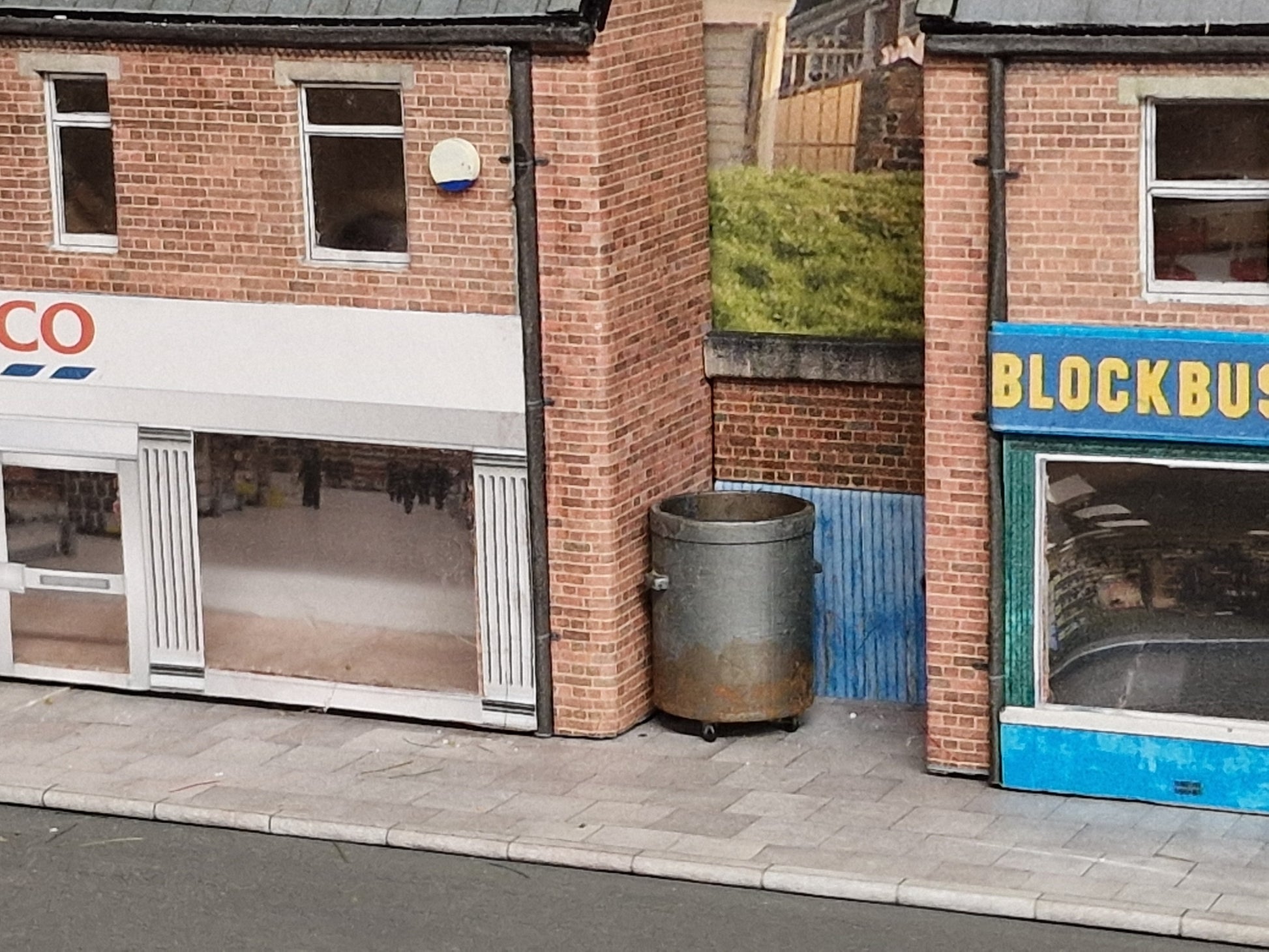 set of 4 unpainted n gauge galvanised round industrial bins.